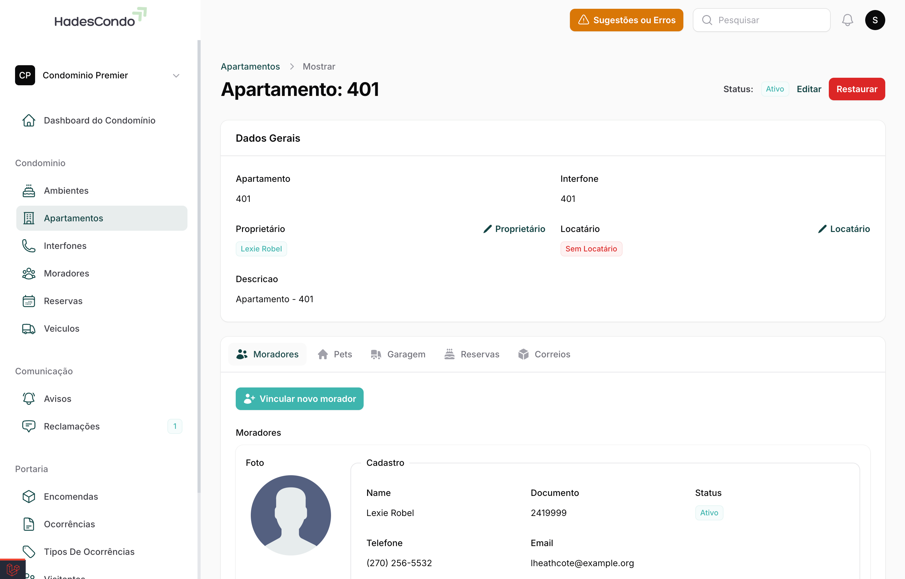 Sistema para registro e acompanhamento de reclamações, sugestões e solicitações dos moradores.